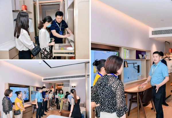 6月9日,活动第二站来到武汉徐东希尔顿惠庭酒店,这也是希尔顿惠庭第一次大规模新店现场品鉴活动,武汉徐东店全体同仁为参会来宾提供了精致舒适的服务,协助本场品鉴会的会场环节及参观环节的圆满达成。通过对酒店大堂、公区、配套、客房等区域的细致品鉴,许多投资人对希尔顿惠庭在新旅居时代的前景愈发充满好奇,眼中的兴奋之情溢于言表。